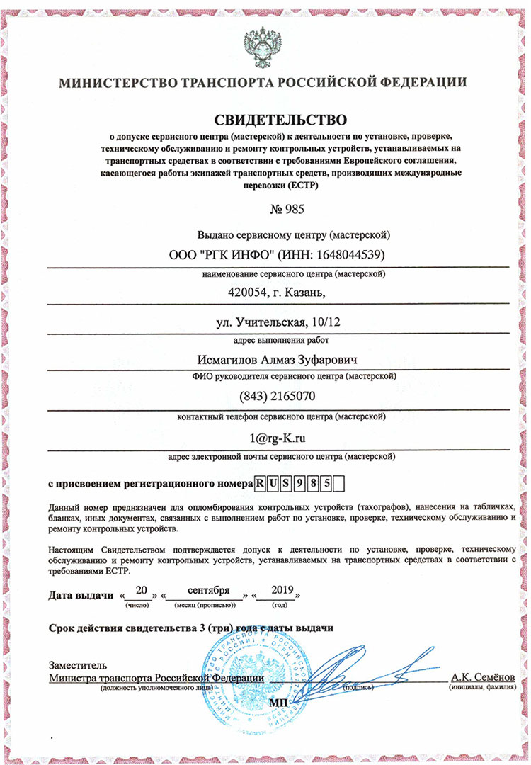 Мы являемся лицензированной мастерской допущенной к установке, калибровке, поверке тахографов, а также к выпуску карт водителей и предприятий.